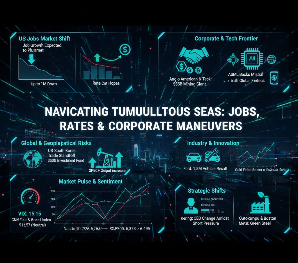 최근 시장은 미국 고용 성장률의 급격한 하향 조정 가능성, 연준의 금리 인하 기대감, 그리고 주요 기업들의 인수합병 및 전략적 변화에 대한 주목할 만한 소식들로 요동치고 있습니다. 이러한 거시경제 지표와 기업별 뉴스는 투자 환경에 복합적인 영향을 미치며, 특히 금리 인하 기대감이 시장에 긍정적인 분위기를 불어넣는 가운데, 잠재적인 경제 둔화 신호와 개별 기업의 리스크 요인들을 면밀히 주시해야 합니다. 투자자들은 변동성이 커지는 시장에서 기회와 위협 요소를 동시에 고려하여 신중한 접근이 필요합니다.