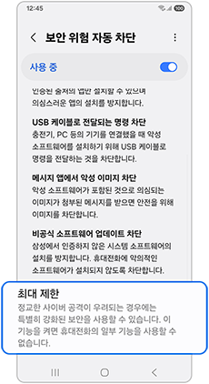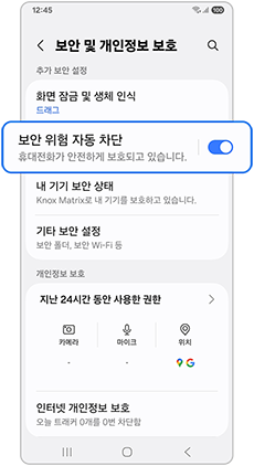 - 2G를 꺼두기(갤럭시/안드로이드) — 단말·통신사 지원 시 2G 자체를 비활성화하세요. 가짜 기지국의 대표적 공격을 줄입니다. 갤럭시의 경우 보안 위험 자동 차단 + 최대 제한 사용